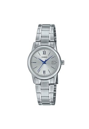 - • Marca: Casio• Modelo: LTP-V002D-7B3UDF• Colección: Core Ladies• Genero: Mujer• Color de la caja: Plateado• Color del pulso: Plateado• Material del Pulso: Acero• Cristal: Mineral• Diametro de Caja: 25mm• Material de Caja: Acero• Espesor de Caja: 9.2mm• Movimiento: Cuarzo• Resistencia al agua: 5 bares (50 metros)• Tipo de Cierre: Desplegable• Garantía: 12 MESES SOBRE MAQUINARIA UNICAMENTE.NO CUBRE: *Uso inadecuado por parte del comprador, Golpes y/o mala manipulación del producto. *No aplica para daños, deterioro o cambio de pulso.*No aplica para coronas y/o cristales.