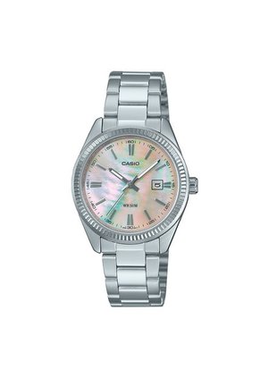 - • Marca: Casio• Modelo: LTP-1302DS-4AVDF• Colección: Core Ladies• Genero: Mujer• Color de la caja: Plateado• Color del pulso: Plateado• Material del Pulso: Acero Inoxidable• Cristal: Mineral• Diametro de Caja: 30.2mm• Material de Caja: Acero Inoxidable• Espesor de Caja: 8.8mm• Movimiento: Cuarzo• Resistencia al agua: 5 bares (50 metros)• Tipo de Cierre: Desplegable• Garantía: 12 MESES SOBRE MAQUINARIA UNICAMENTE.NO CUBRE: *Uso inadecuado por parte del comprador, Golpes y/o mala manipulación del producto. *No aplica para daños, deterioro o cambio de pulso.*No aplica para coronas y/o cristales.
