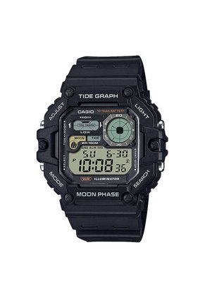 - • Marca: Casio• Modelo: WS-1700H-1AVDF• Colección: Core Mens• Genero: Hombre• Color de la caja: Negro• Color del pulso: Negro• Material del Pulso: Resina• Cristal: Resina• Diametro de Caja: 48.6mm• Material de Caja: Resina• Espesor de Caja: 15.2mm• Movimiento: Cuarzo• Resistencia al agua: 10 bares (100 metros)• Tipo de Cierre: Hebilla• Garantía: 12 MESES SOBRE MAQUINARIA UNICAMENTE.NO CUBRE: *Uso inadecuado por parte del comprador, Golpes y/o mala manipulación del producto. *No aplica para daños, deterioro o cambio de pulso.*No aplica para coronas y/o cristales.