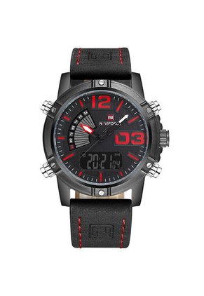 Reloj Cuarzo Digital Militar Naviforce NF9095 Negro Rojo