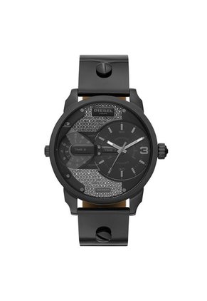 - • Marca: Diesel• Modelo: DZ5584• Colección: Mini Daddy• Genero: HOMBRE• Color de esfera: Negro• Color del pulso: Negro• Material del Pulso: cuero• Cristal: Mineral• Diametro de Caja: 46mm• Material de Caja: acero inoxidable• Espesor de Caja: 14mm• Movimiento: Cuarzo• Resistencia al agua hasta una presión 3 Bar (30 Metros/ 100 Ft) (no sumergible)• Tipo de Cierre: Hebilla• Garantía: 12 MESES SOBRE MAQUINARIA UNICAMENTE.NO CUBRE: *Uso inadecuado por parte del comprador, Golpes y/o mala manipulación del producto. *No aplica para daños, deterioro o cambio de pulso.*No aplica para coronas y/o cristales.