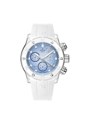 - • Marca: Edox• Modelo: 10255-3BCAB-BUCIDN• Colección: CO-1 Chronolady• Genero: Mujer• Color de la caja: Plateado• Color del pulso: Blanco• Material del Pulso: Goma• Cristal: Zafiro• Diametro de Caja: 38mm• Material de Caja: Acero inoxidable• Espesor de Caja: 11mm• Movimiento: Cuarzo• 30 Bar (300 Metros)• Tipo de Cierre: Desplegable• Garantía: 24 MESES SOBRE MAQUINARIA UNICAMENTE.NO CUBRE: *Uso inadecuado por parte del comprador, Golpes y/o mala manipulación del producto. *No aplica para daños, deterioro o cambio de pulso.*No aplica para coronas y/o cristales.