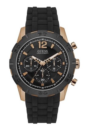 Reloj de pulso Guess Caliber Negro/Oro Rosa W0864G2 para hombre con movimiento de cuarzo, con caja en acero inoxidable,y un diámetro de 46 mm. Tablero y pulso negro. Con una caja espectacular en color negro con diales de tono oro rosa que resaltan el logo de Guess. Distribuidores directos y autorizados para Guess en Colombia.