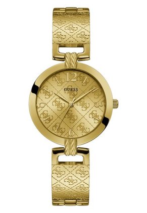 Reloj de pulso Guess G luxe - Dorado W1228L2 para mujer con movimiento analógico, con caja en acero inoxidable,y un diámetro de 35 mm. Tablero y pulso Dorado. Con una caja espectacular en color oro y diales en el mismo tono que resaltan el logo de Guess. Distribuidores directos y autorizados para Guess en Colombia.