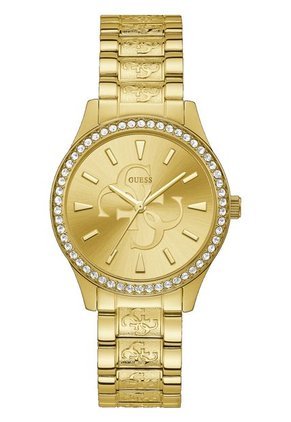 Reloj de pulso Guess Anna - Dorado W1280L2 para mujer con movimiento analógico, con caja en acero inoxidable,y un diámetro de 38 mm. Tablero y pulso en dorado. Con una caja espectacular color Oro con brillantes Swarovski y diales en el mismo tono que resaltan el logo de Guess. Distribuidores directos y autorizados para Guess en Colombia.