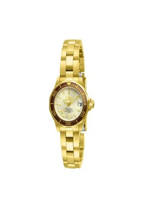 - • CARATERÍSTICAS PRINCIPALES :• Colección: Pro Diver.• Género: Femenino.• Tono de la banda: Oro.• Tono de la caja: Oro.• Color del tablero: Champan.• Material del cristal: Mineral.• Material de la banda: Acero Inoxidable.• Material de la caja: Acero Inoxidable.• Tamaño Caja: 23.5mm.• Ancho de la banda (mm): 12.• Largo de la banda (mm): 170.• Resistencia al agua (m): 100.• Tipo de movimiento: Cuarzo.• Garantía de 2 años por Defectos de Fabricación. No aplica para Pulsos o Cristales. • Producto sujeto a inspeccion aduanal, lo cual puede variar el tiempo de entrega.