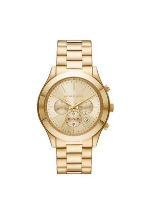 - • Marca: Michael Kors• Modelo: MK8909• Colección: Runway• Genero: Hombre• Color de esfera: dorado• Color del pulso: dorado• Material del Pulso: acero inoxidable• Cristal: mineral• Diametro de Caja: 44mm• Material de Caja: acero inoxidable• Espesor de Caja: 11mm• Movimiento: cuarzo• solo salpicaduras - No sumergible• Tipo de Cierre: desplegable• Garantía: 24 MESES SOBRE MAQUINARIA UNICAMENTE.NO CUBRE: *Uso inadecuado por parte del comprador, Golpes y/o mala manipulación del producto. *No aplica para daños, deterioro o cambio de pulso.*No aplica para coronas y/o cristales.