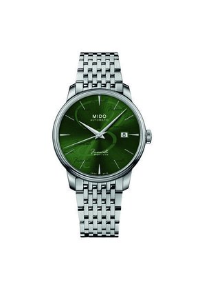 - • Marca: Mido• Modelo: M027.407.11.091.00• Colección: Baroncelli• Genero: Masculino• Color de esfera: Plateado• Color del pulso: Plateado• Material del Pulso: Acero Inoxidble• Cristal: Zafiro• Diametro de Caja: 39mm• Material de Caja: Acero Inoxidable• Espesor de Caja: 7,3mm• Movimiento: Automatico• 3 bar (30 metros)• Tipo de Cierre: Hebilla• Garantía: 24 MESES SOBRE MAQUINARIA UNICAMENTE.NO CUBRE: *Uso inadecuado por parte del comprador, Golpes y/o mala manipulación del producto. *No aplica para daños, deterioro o cambio de pulso.*No aplica para coronas y/o cristales.