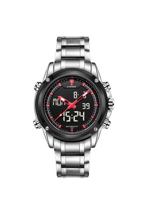 Reloj Naviforce Análogo Digital NF9050M Acero Inoxidable - Plateado Rojo