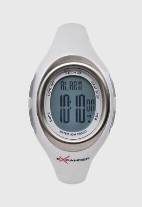 Reloj SECTOR Expander Cardio Blanco El reloj SECTOR Expander combina tecnología y estilo para acompañarte en el día a día. Ideal para uso diario o deportivo, incluye hora digital, fecha, alarma, cronógrafo, luz por pulsación y cristal resistente. Además, mide frecuencia cardiaca y calorías, ayudándote a mantener el control en cada entrenamiento.Incluye: Correa con medidor de frecuencia cardiaca.