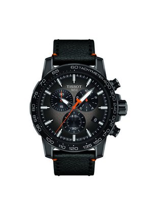 El Supersport Chrono Basketball Edition es un reloj cronógrafo deportivo moderno y masculino que combina la calidad de la relojería suiza y el diseño con la dinámica de alta energía inspirada en la larga asociación de Tissot con el baloncesto. La esfera negra degradada con un original patrón de red de baloncesto y las esquinas naranjas pespunteadas en el brazalete son un guiño a esta disciplina y su cultura. Con una caja de acero inoxidable de 45,5 mm con revestimiento de PVD negro, presenta un bisel fijo con una escala taquimétrica, el Supersport tiene mucho carácter. Está equipado con una función de fin de vida útil que le permitirá saber cuándo es necesario reemplazar la batería y los índices y las manecillas están recubiertos con Super-LumiNova® para una fácil visibilidad de la hora, lo que lo convierte en el accesorio ideal de los hombres con estilo asertivo. Si quieres añadir un toque personal extra.ESPECIFICACIONES TÉCNICAS