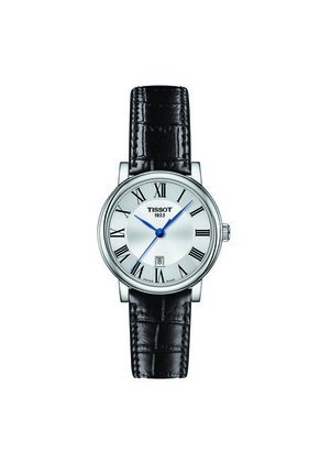 - • Marca: Reloj• Modelo: T122.210.16.033.00• Colección: Carson• Genero: Mujer• Color de la caja: plateado• Color del pulso: negro• Material del Pulso: cuero• Cristal: Zafiro• Diametro de Caja: 30mm• Material de Caja: Acero inoxidable• Espesor de Caja: 6.7mm• Movimiento: Cuarzo• 5 bares (50 metros)• Tipo de Cierre: hebilla• Garantía: 24 MESES SOBRE MAQUINARIA UNICAMENTE.NO CUBRE: *Uso inadecuado por parte del comprador, Golpes y/o mala manipulación del producto. *No aplica para daños, deterioro o cambio de pulso.*No aplica para coronas y/o cristales.