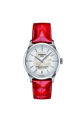 - • Marca: Reloj• Modelo: T139.207.16.111.00• Colección: Chemin des tourelles• Genero: Mujer• Color de la caja: plateado• Color del pulso: rojo• Material del Pulso: cuero• Cristal: zafiro• Diametro de Caja: 34mm• Material de Caja: Acero Inoxidable• Espesor de Caja: 10.5mm• Movimiento: Automático• 5 bares (50 metros)• Tipo de Cierre: mariposa• Garantía: 24 MESES SOBRE MAQUINARIA UNICAMENTE.NO CUBRE: *Uso inadecuado por parte del comprador, Golpes y/o mala manipulación del producto. *No aplica para daños, deterioro o cambio de pulso.*No aplica para coronas y/o cristales.