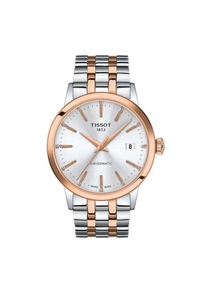 - • Marca: Tissot• Modelo: T129.407.22.031.00• Colección: T- Classic Dream• Genero: Unisex• Color de la caja: plateado / oro rosa• Color del pulso: plateado / oro rosa• Material del Pulso: Acero inoxidable• Detalles de caja: Caja circular con bizel y corona revestidos en PVD Oro rosa resaltando el reloj con mayor detalle. En la parte posterior se puede entrever el movimiento automatico del reloj al igual que otros detalles sutilmente grabados. • Cristal: Zafiro• Diametro de Caja: 42mm• Material de Caja: Acero inoxidable / Oro rosa• Espesor de Caja: 11.5mm• Movimiento: Automático, con una reserva de marcha de hasta 72 horas• 5 bares (50 metros)• Tipo de Cierre: Mariposa• Garantía: 24 MESES SOBRE MAQUINARIA UNICAMENTE.NO CUBRE: *Uso inadecuado por parte del comprador, Golpes y/o mala manipulación del producto. *No aplica para daños, deterioro o cambio de pulso.*No aplica para coronas y/o cristales.