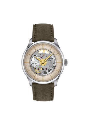 - • Marca: Tissot• Modelo: T139.836.16.261.00• Colección: Chemin Des Tourelles• Genero: Unisex• Color de la caja: Plateado• Color del pulso: Verde terroso• Material del Pulso: Cuero• Detalles de caja: Caja circular de acero inoxidable, la cual, en la esfera y parte posterior, permite una visión clara y directa del mecanismo automático del reloj, así como de otros detalles sutilmente grabados.• Cristal: Zafiro• Diametro de Caja: 39mm• Material de Caja: Acero inoxidable• Espesor de Caja: 11.2mm• Movimiento: Automático, con una reserva de marcha de hasta 80 horas• 5 bares (50 metros)• Tipo de Cierre: Hebilla desplegable• Garantía: 24 MESES SOBRE MAQUINARIA UNICAMENTE.NO CUBRE: *Uso inadecuado por parte del comprador, Golpes y/o mala manipulación del producto. *No aplica para daños, deterioro o cambio de pulso.*No aplica para coronas y/o cristales.