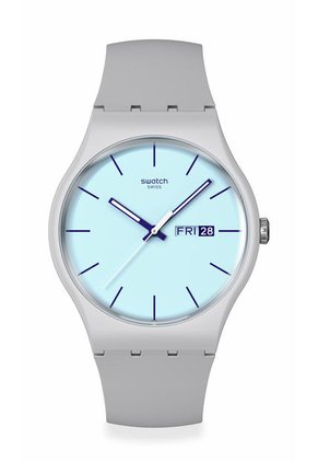 Relojes Swatch Unisex BLUEBERRY SKY. Silicona Gris SO29M702