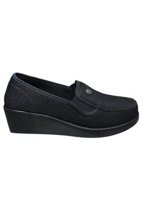 ROMULO MOCASÍN PLANO TEXTIL PARA MUJERMarca: RomuloHecho en Colombia.Código Interno: CGUE-2Color: NegroMaterial: TextilPlantilla: AnatómicaForro: N/ACapellada: TextilAjuste: MocasínSuela: SintéticoCaracterísticas adicionales: N/AAltura: 2 1/2100% Hecho en Colombia. Apoye la industria nacional, compre colombiano.Descripción:Este mocasín Romulo para mujer ha sido diseñado pensando en la mujer que necesita un calzado estable, cómodo y funcional, sin renunciar a una apariencia sobria y elegante. A simple vista, el modelo transmite una sensación de firmeza y equilibrio, con un diseño cerrado que brinda seguridad al caminar y una silueta clásica que se adapta con facilidad a distintos estilos.La capellada en material textil negro presenta un tejido fino y uniforme, similar a una malla compacta, que aporta un acabado limpio y discreto. Este tipo de textil permite una mejor transpiración del pie, ayudando a mantener una sensación fresca durante el uso prolongado, además de ofrecer flexibilidad para acompañar el movimiento natural al caminar. Su color negro profundo facilita la combinación con prendas claras u oscuras, convirtiéndolo en un calzado versátil para el día a día.El diseño tipo mocasín sin cordones está pensado para brindar practicidad. El calce es rápido y sencillo, ideal para mujeres que buscan un zapato funcional, fácil de poner y quitar, sin elementos rígidos que generen presión o incomodidad. El contorno superior está suavemente acolchado, lo que mejora el contacto con el pie y evita molestias en el empeine o los laterales.En el interior, la plantilla anatómica cumple un papel fundamental, ya que proporciona soporte en las zonas clave del pie. Su estructura ayuda a distribuir el peso de manera uniforme, reduciendo la fatiga y ofreciendo mayor confort durante largas jornadas. Este detalle convierte al mocasín en una excelente opción para actividades laborales, caminatas prolongadas o uso continuo durante el día.El tacón corrido de 2 ½ aporta una elevación moderada que mejora la postura sin comprometer la estabilidad. A diferencia de tacones delgados, este diseño ofrece una base amplia que brinda seguridad al caminar. La suela sintética, de acabado sólido y continuo, refuerza la resistencia del calzado y garantiza una pisada firme sobre diferentes superficies, manteniendo un buen nivel de durabilidad.Gracias a su diseño sobrio y estructurado, este modelo se adapta tanto a entornos formales como a usos cotidianos. Puede combinarse con pantalones, faldas o prendas de trabajo, manteniendo siempre una imagen pulida y ordenada.Este mocasín Romulo se encuentra disponible en tallas de la 34 a la 40, lo que permite una mejor adaptación a diferentes tipos de pie y asegura un ajuste adecuado desde el primer uso.Fabricado 100% en Colombia, este calzado refleja el compromiso de la marca con la calidad, el trabajo responsable y el apoyo a la industria nacional. Cada par es el resultado de procesos cuidadosos que buscan ofrecer un producto confiable, cómodo y duradero.Un zapato pensado para acompañarte con seguridad, estabilidad y confort en cada paso de tu rutina diaria.