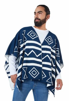 Esta es una ruana diseñada con una temática étnica, una de sus cualidades a resaltar es que es una prenda doble faz, por lo que combinar la será fácil. Tipo De Corte: RuanaTipo De Cuello: AbiertoTipo De Manga: N/ADetalle Especial: Tejido doble fazOcasión: CasualOrigen: HECHO EN COLOMBIA