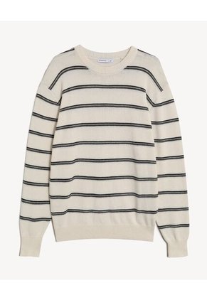 Buzo de silueta suelta con diseño de rayas horizontales que aporta un aire relajado y moderno, cuello redondo y acabados limpios que lo hacen ideal para usar solo o en capas, perfecto para looks casuales que buscan comodidad sin perder actitud.Especificaciones:Composición: 100% AlgodónTipo de cuello: Cuello RedondoInstrucciones de Lavado:No dejar en remojoLavar en agua fría separadamenteNo usar blanqueadorNo retorcerSecar a la SombraPlancha tibiaHecho en ChinaGarantía: 30 Días.