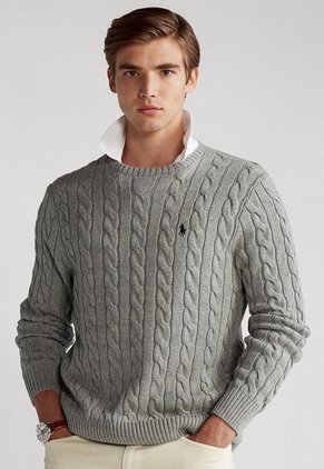 Saco Gris Polo Ralph Lauren • Género: Masculino • Tipo de Producto: Saco • Color: Gris • Actividad: Casual • Material: Algodón • Cuidados Especiales: Lavar a máquina lavadora con agua fría 30ºC, ciclo delicado con colores similares, lavar con jabón suave, no exprimir. • Fit: Custom fit • Tipo de Cuello: Redondo • Tipo de Manga: Larga • Medida Largo Total: 78cm • Medida Torso/Busto: 100cm • Medida Cintura: 102cm • Origen: Producto Importado • Detalle Especial: Este jersey se ha confeccionado con un algodón más sostenible y combina dos de los detalles de diseño más icónicos de Polo: un motivo de punto de ochos con textura y nuestro caballo marca de la casa. • Recomendación: Puedes probártelo antes de solicitar el cambio. • Talla: M