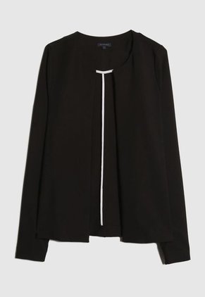 Saco Unicolor Tipo Blazer Desestructurado, Manga Larga Con Sesgos Internos En Contraste.Saco De MujerCuello: N/AFit: N/ATiro: N/AColor: NegroComposición: Poliéster 89%-Elastano 11%Instrucciones De Lavado:No Dejar En RemojoLavar En Agua Fría SeparadamenteNo Usar BlanqueadorNo RetorcerSecar A LasombraPlancha Tibia