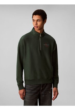 Este saco de manga larga es la opción perfecta para quienes buscan un estilo moderno y cómodo. Su diseño versátil la convierte en una prenda ideal para cualquier ocasión, ya sea para un día casual o una salida con amigos. La textura suave y acogedora proporciona una sensación agradable al tacto, mientras que los detalles sutiles añaden un toque distintivo que caracteriza a la marca. Características• Confeccionado en algodón regenerado, poliéster reprocesado• Puños acanalados• Cuello semi alto con cuello de 1/4 de cremallera• Logo de Calvin Klein en el pecho• Detalles distintivos de Calvin KleinTalle y corte• Corte regular• Manga largaComposición y cuidados• 92% Algodón, 8% PoliésterModelo: 4RD244G-301