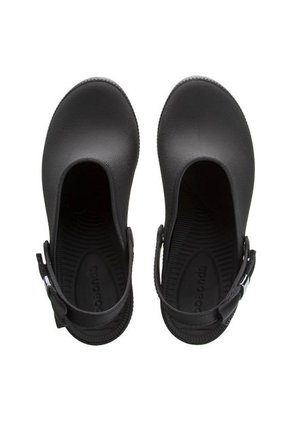 le brinda un toque casual. Tiene punta redonda, empeine cubierto y el área del