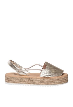 Sandalia fabricada en cuero metalizado con moderno y cómodo diseño, finas costuras y sutiles detalles.Cordón para ajustar al tobillo.Plataforma con fibra texturizada en tejido sintético.Suela: 4 Cm.Capellada : CUEROForro : CUEROSuela : EVAPaís de origen : ESPAÑARegistro SIC : 860520243Es importante tener en cuenta que los colores de los productos pueden variar con respecto a las imágenes o fotografías publicadas.
