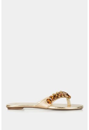Sandalia Plana Stone De Cuero Para Mujer Detalle De Pedrería En Capellada