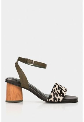 Sandalias de cuero ultra suave, tacón estilizado en madera y combinación de cuero de pelo natural con estampado de animal print que le imprime un aire audaz a esta pieza. Estas sandalias para mujer cuentan con una plantilla cómoda y sistema de ajuste con hebilla. Podrás combinarlas con tus faldas de estilo bohemio y usarlas en tu día a día o en una ocasión especial.
