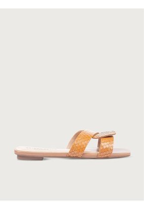 Sandalias 100% en cuero con tiras cruzadas y un leve tacón. Cómodas para que puedas caminar el tiempo que quieras sin cansarte.