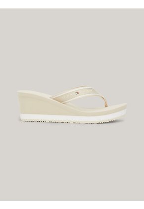 Sandalias Beige De Cuña Con Logo Tommy Hilfiger