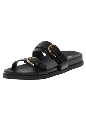 Añade elegancia sin esfuerzo a tu estilo diario con estas sandalias deslizantes negras. Con dos elegantes correas con detalles de hebilla dorada pulida, combinan comodidad con sofisticación moderna. La suela plana ofrece un uso ligero para una mayor comodidad durante todo el día, mientras que el diseño atemporal los hace perfectos para combinar con jeans, vestidos o faldas de verano. Una sandalia versátil imprescindible para salidas casuales o fines de semana relajados.