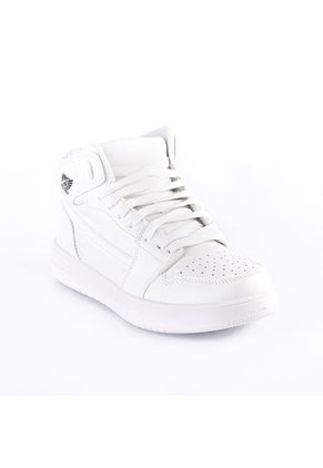 Tipo De Calzado: Tenis deportivo para hombre: Es un zapato de caña alta con un diseño moderno y elegante. El color es blanco, lo que le da un aspecto limpio y versátil. Tiene un logo negro en el lateral que le da un toque distintivo. El zapato está hecho de material sintético resistente y duradero. El forro es textil, lo que le proporciona comodidad y transpirabilidad. La suela es de PVC, lo que le ofrece un buen agarre y amortiguación. La plantilla es de EVA, lo que le aporta suavidad y confort.