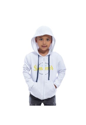 Stonne Saco Para Niño Color Blanco Bocared Manga Larga Con Capota y Estampado En Delantero