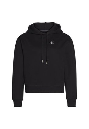 Sudadera De Felpa De Mezcla De Algodón Con Capucha Negro Calvin Klein