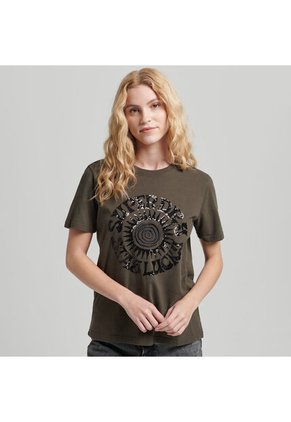Camiseta manga corta para mujer vintage ellish tee.La inspiración viene en muchas formas y tamaños, y procede de diferentes fuentes. Dichas fuentes pueden ayudarte a definir tu verdadero yo y a mostrar al mundo quién eres realmente. Y esto es exactamente lo que ocurre con esta camiseta con adornos y logotipo Vintage Logo. Inspirada en numerosos diseños y temas de los últimos 40 años, se trata de una camiseta especialmente diseñada para que puedas definir tu propio futuro. Corte relajado: el corte clásico de Superdry. Una prenda ni muy estrecha ni muy holgada, simplemente perfecta. Elige tu talla habitual, Cuello redondo, Manga corta, Diseño con adornos, Parche con el logotipo en la manga.Composicion: Material:100% cotton.Fit: Regular.Pais Origen: Turquia.