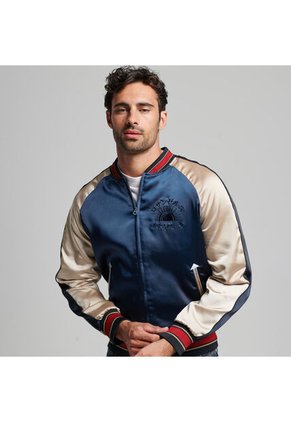 Chaqueta casual para hombre vintage suikajan.En Superdry, nos inspiramos en la unión de las culturas. Al tomar un diseño clásico de estilo occidental, como una chaqueta bómber, y reimaginarlo con la estética oriental, innovamos y creamos algo verdaderamente único. Esta lujosa chaqueta emplea un estilo de arte oriental tradicional para representar los motivos icónicos del estilo estadounidense en un estilo narrativo único. Cada look que crees cuenta una historia: empieza uno nuevo con nuestra chaqueta Suikajan. Corte relajado: el corte clásico de Superdry. Una prenda ni muy estrecha ni muy holgada, simplemente perfecta. Elige tu talla habitual, Cierre de cremallera, Ribetes de canalé, Dos bolsillos delanteros con botón automático, Detalle bordado en la parte delantera, Gráfico bordado en la espalda, Forro integral, Bolsillo interior con botón automático.Composicion: Canalé:100% poliéster Forro:100% poliéster Exterior:100% poliéster.Pais Origen: China.
