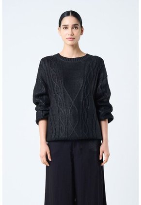 Nuestro sweater destaca por su enfoque en texturas suaves y detalles innovadores, encapsulando el lujo en cada fibra. Ideal para elevar tus outfits, ya sea sobre una camisa para un look preppy con mocasines o junto a botas para una actitud audaz. Sus acabados de rib en cuello, puños y ruedo, combinados con un diseño de hombro caído y detalles trenzados, lo convierten en un esencial versátil para cualquier guardarropa, realzando tu personalidad con sutileza y sofisticación.
