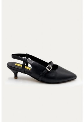 El tacón Ava es la opción perfecta para quienes buscan elegancia y comodidad en un solo diseño. Con punta estilizada y correa ajustable, ofrece un look sofisticado y versátil, ideal para la oficina o eventos especiales.