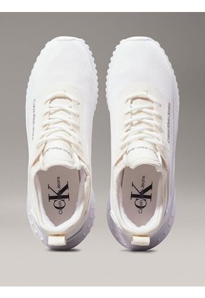 La parte superior de los tenis está fabricada con un 65 % de poliéster reciclado, creado a partir del reprocesamiento de materiales existentes.Características• Parte superior de mezcla de malla reciclada• Interior de espuma cómoda• Forro de malla de poliéster• Suela técnica de EVA ultraligera• Marca de Calvin Klein en el lateral, la lengüeta, el talón y el tiradorComposición y cuidados• Capellada: 83% Textil, 13% Sintético, 4% Caucho/ Forro: 100% Textil