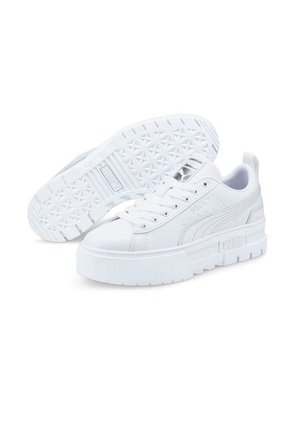 Puma presenta las Mayze Glow, unas zapatillas sofisticadas de estilo urbano pensadas para todas aquellas mujeres que quieren destacar y marcar tendencia con su propia actitud. La parte superior de piel prémium, la suela elevada y voluminosa, así como los detalles en plata con los logotipos de PUMA generan un look atrevido perfecto para lucir en las calles de la ciudad.