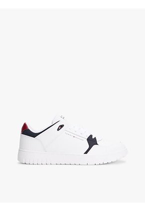 Estos tenis inspiradas en los modelos de baloncesto, ideales para completar looks de fin de semana, incorporan una suela gruesa de goma ligeramente dentada, paneles con mezcla de texturas y detalles distintivos engomados.Características• Exterior de cuero y poliuretano• Forro de poliéster• Plantilla extraíble de goma termoplástica reciclada, otros tejidos y poliuretano• Suela de goma finamente dentada• Paneles con mezcla de texturas• Detalle de ventilación en la parte superior• Detalles distintivos de Tommy Hilfiger• Logo de Tommy Hilfiger engomado en el talónTalle y corte• Con cordones• Diseño de corte bajo• Suela gruesa• Punta redondaComposición y cuidados• 90 % Cuero, 10 % PoliuretanoModelo: FM0FM05518YBS