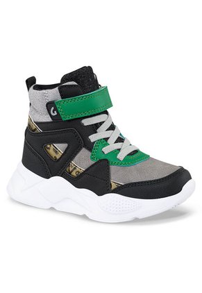 Zapatos casuales estilo botín ideales para niños y adolescentes que protegerán sus tobillos. Perfectos para actividades cotidianas. Elaborado en textil tipo lona y sintético con aplique en apariencia en carnaza, velcro ajustable mas cordon elastico, cuello acolchado con diseño tipo bota, suela en phylon con piezas en tpr. 2 meses de garantía. Hecho en China.