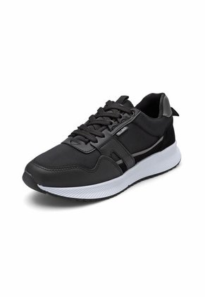 tenis para hombre, en color negro, elaborado en sintético y forro en textil, costuras al tono, suela en T.R, producto nacional de excelente calidad diseño y confort.