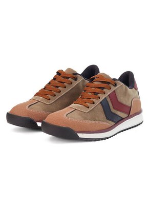 Detalles del producto:• Capellada: carnaza sintética de alta calidad que brinda textura, durabilidad y un look moderno.• Laterales: material sintético suave, resistente y fácil de limpiar.• Forro: terri textil que ofrece una sensación acolchada para máximo confort.• Suela: fabricada en Spanso, ligera y flexible, proporcionando un excelente agarre y amortiguación.• Color: mezcla de café y vinotinto, que aporta versatilidad y estilo casual.• Origen: 100% hecho en Colombia.