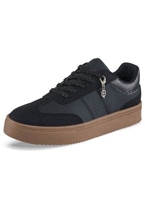 Zapatos con estilo casual, ideales para las mujeres que aman verse siempre bien ¡Prueba su practicidad y comodidad! Tenis casuales con apliques decorativos y cordones con hilos de lúrex. Elaborados en sintético con detalles posteriores brillantes, puntera en sintético tipo carnaza, forro textil y suela en PVC. Hecho en Colombia.