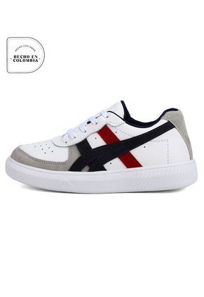 Tenis niño elaborado en sintético de amarrar , costuras al tono , forro en sintético suela el t.r. producto nacional de excelente calidad diseño y confort.