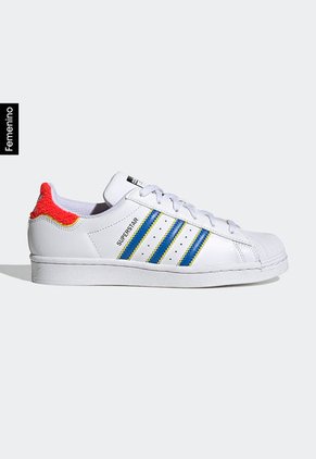 Tenis Lifestyle Blanco-Azul-Naranja Neón adidas Originals Superstar