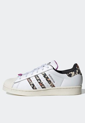 Los iconos nunca mueren. Especialmente cuando se trata de esta Superestrella de Adidas. Durante 50 años, la apariencia fresca y sin esfuerzo de estos zapatos, que han sido amados y apoyados por atletas y amantes de la moda, no ha cambiado. Esta temporada, las clásicas 3 Franjas y el parche del talón se actualizan con un estampado de mariposas. También viene con un lindo amuleto de trébol que hace que sea fácil de combinar con tu ropa favorita. Deberías poder combinarlo con tu vestido favorito. Un zapato con una energía alegre inspirada en la cultura juvenil que brilla en tus pies.